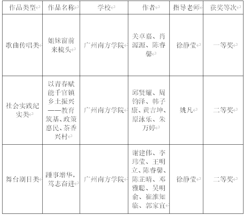 由姚凡老师指导,邱贤耀等同学完成的作品《以青春赋能千官镇乡土振兴——教育筑基、政策惠民、茶香兴村》荣获社会实践纪实类二等奖。作品记录了 “政青春公共服务实践队”在云浮市郁南县千官镇开展“教育筑基、政策惠民、茶香兴村”实践活动的成果。开办夏令营激发儿童创造力、设立政策摊位服务百余居民、直播助农帮“千官茶”云端破圈增收,他们用青春力量打通乡土振兴的实践链路。